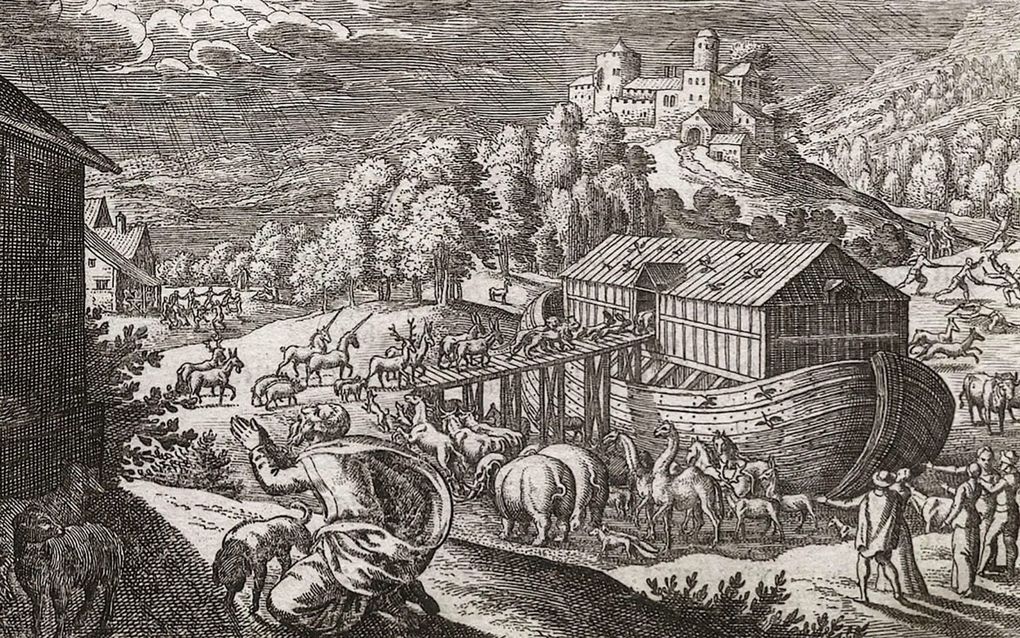 In 1624, Merian moved permanently to Frankfurt with his family to take over his father-in-law’s business. The first volume of his Bible illustrations was published the following year. The etchings still fascinate today with their wealth of detail. In the depiction of Noah’s Ark, the various species of animals enter the ship in pairs. Among others, elephants, hares, deer and even a pair of unicorns can be seen.
