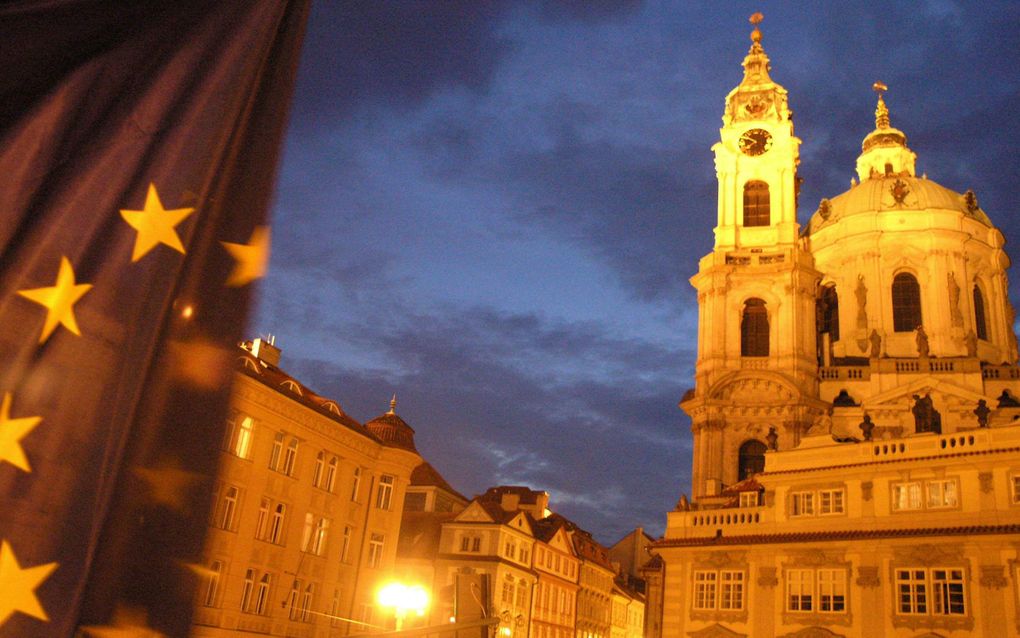 An EU flag waves in the wind overlooking the Church of Saint Nicolaus glowing in a twilight at Mala strana's square in Prague's most picturesque district. Photo AFP, Joe Klamar